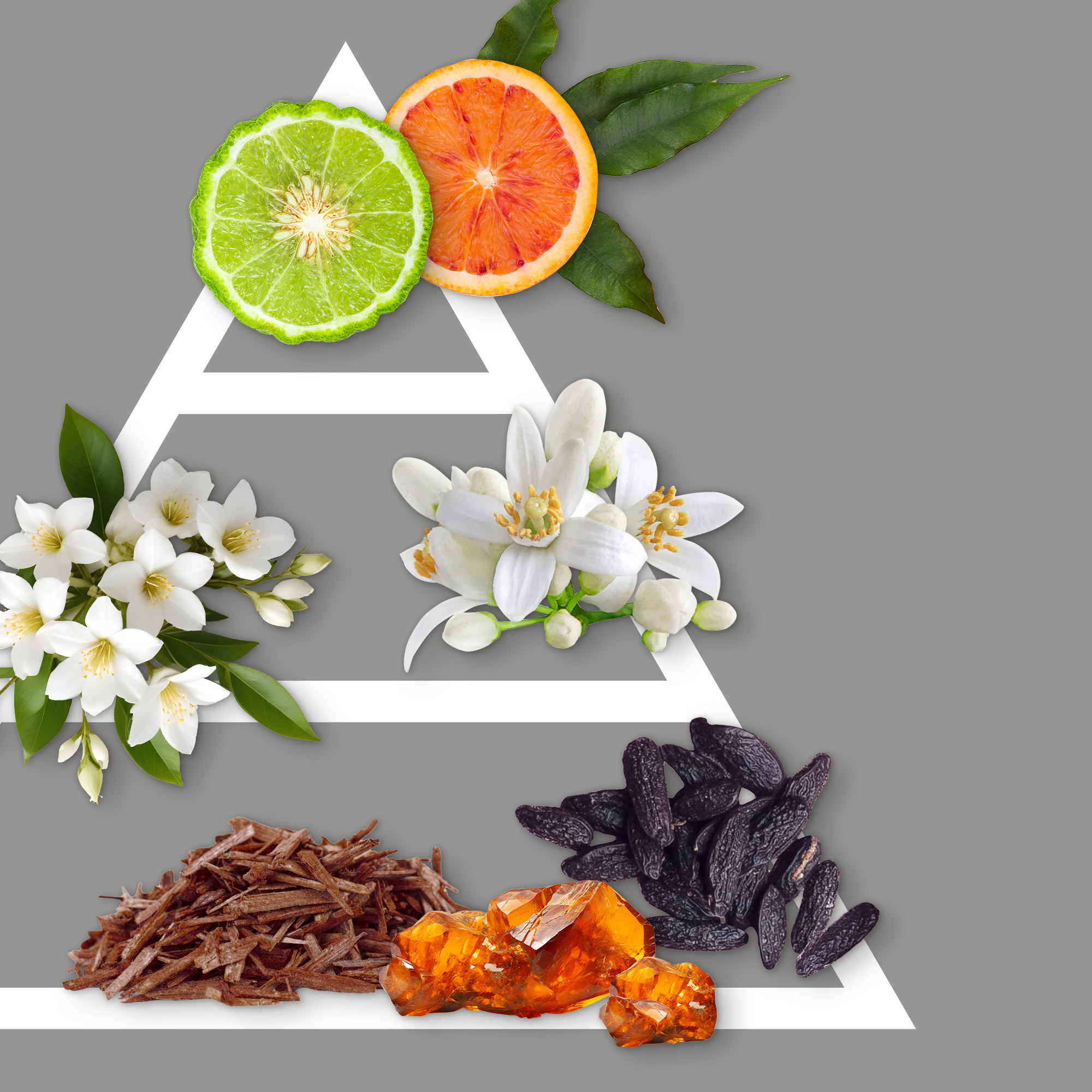 La composizione si apre con un fresco mix di agrumi inondato da divertenti Accenti Acquatici. Nel cuore divampano le note del Gelsomino Indiano, dei Fiori d’Arancio, della Rosa Bulgara e della Mimosa. Un incandescente sillage floreale dominato dall’olio essenziale di Gelsomino capace di stimolare e ravvivare la sensualità. Una fragranza dal fascino ipnotico ed ammaliante.